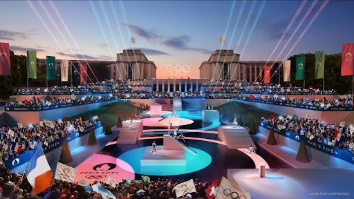 《金融时报》表示,这次活动非常壮观,充满了 “令人难忘的媚俗时刻”:“一个戴帽蒙面的身影在巴黎的屋顶上跳跃,变装皇后在电子音乐中魅惑观众,法国大革命时期被砍头的皇室成员在重金属音乐中翩翩起舞,一匹银色的骏马和一个身着盔甲的骑手在塞纳河上滑行”。《纽约时报》总结:“Lady Gaga 和 Céline Dion、Eurodisco 舞者、变装皇后们就像最后的晚餐上的使徒,塞纳河的码头被粉色覆盖,还有一群流浪者在国家图书馆漫步”。