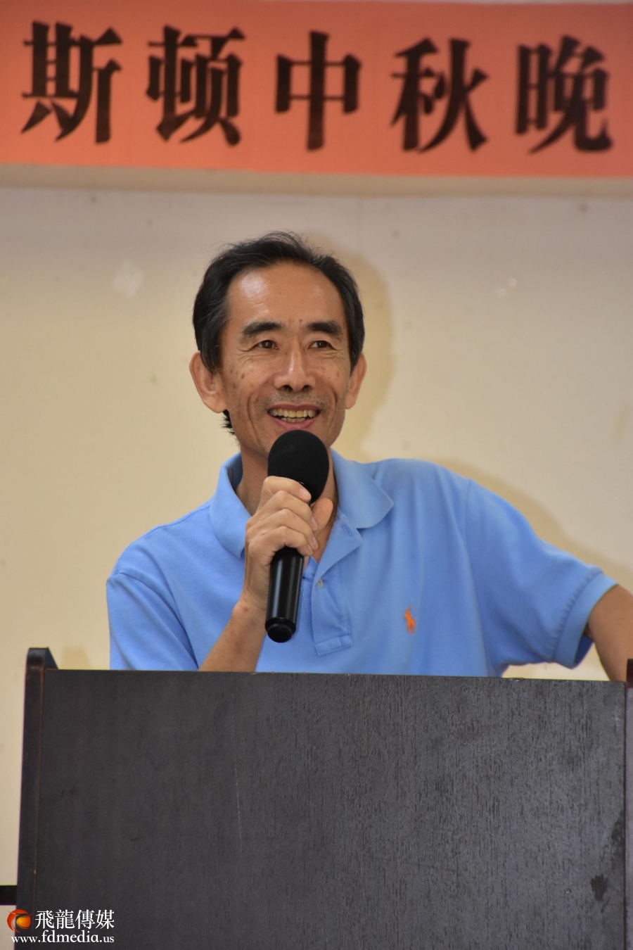 中秋晚宴总导演/副主席刘根明介绍对晚宴主题的策划及节目和图片的招募情况。