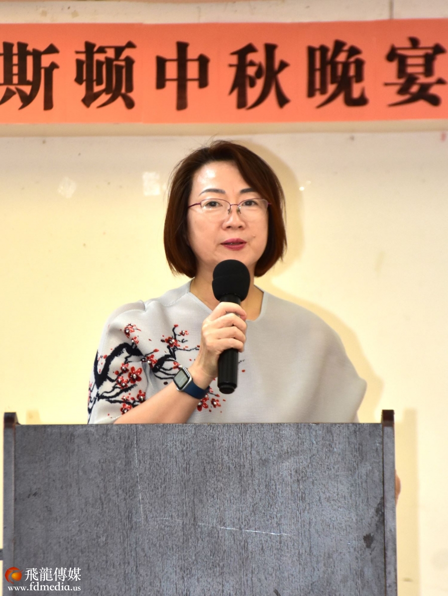 中国人活动中心执行长陈皙晴介绍中秋晚宴组委会