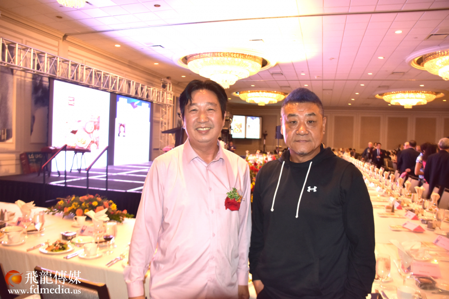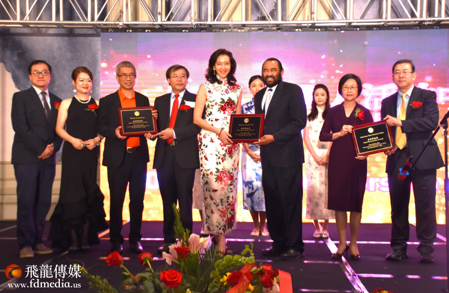中国人活动中心董事长范玉新宣布获得杰出贡献奖的单位,有美国银行、恒丰银行等。