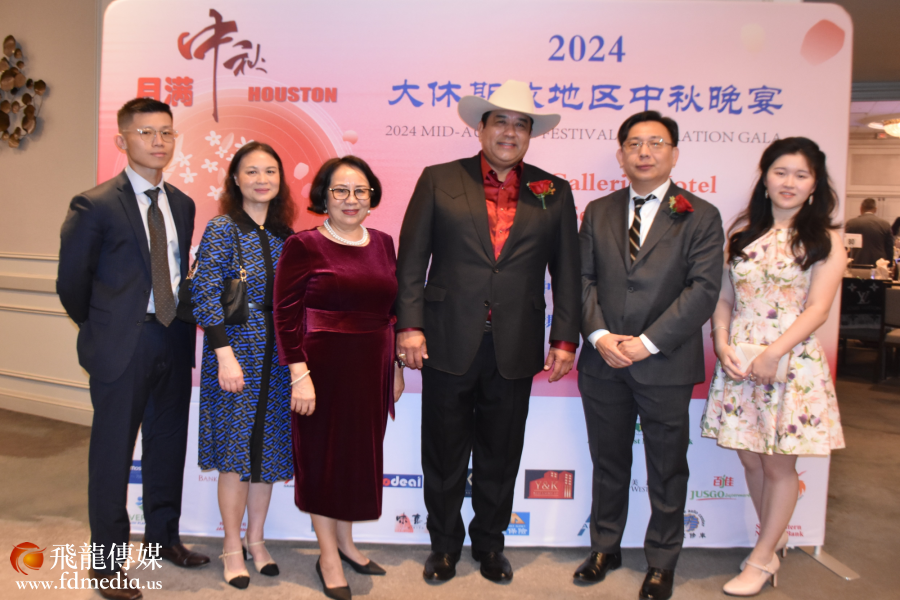 中秋晚宴汇聚了来自各界的近800名嘉宾,包括中国驻美大使馆董传杰参赞、美国国会议员Al Green、Troy Nehls亚裔代表张晶晶、德州众议员Gene Wu、乔治·布什美中关系基金会主席Neil Bush、斯坦福市副市长谭秋晴、休斯敦财务长Chris Hollins、第五区法官以色列.加西亚(lsrael B. Garcia, Jr. )、Fulshear市议员Patrick Powers(王力)等重要嘉宾及各界精英。