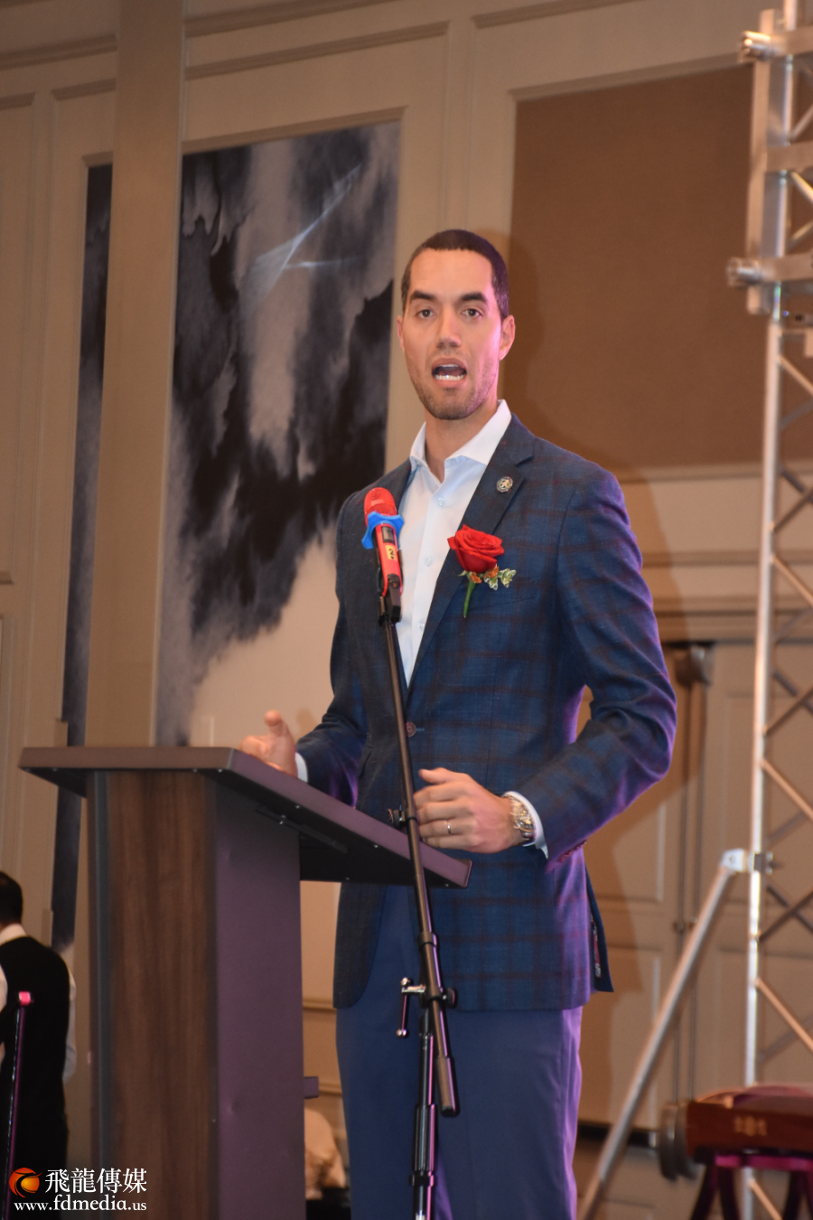 中国人活动中心执行长陈皙晴宣布《美中友好奖》,获得此殊荣的是乔治·布什美中关系基金会主席Neil Bush。