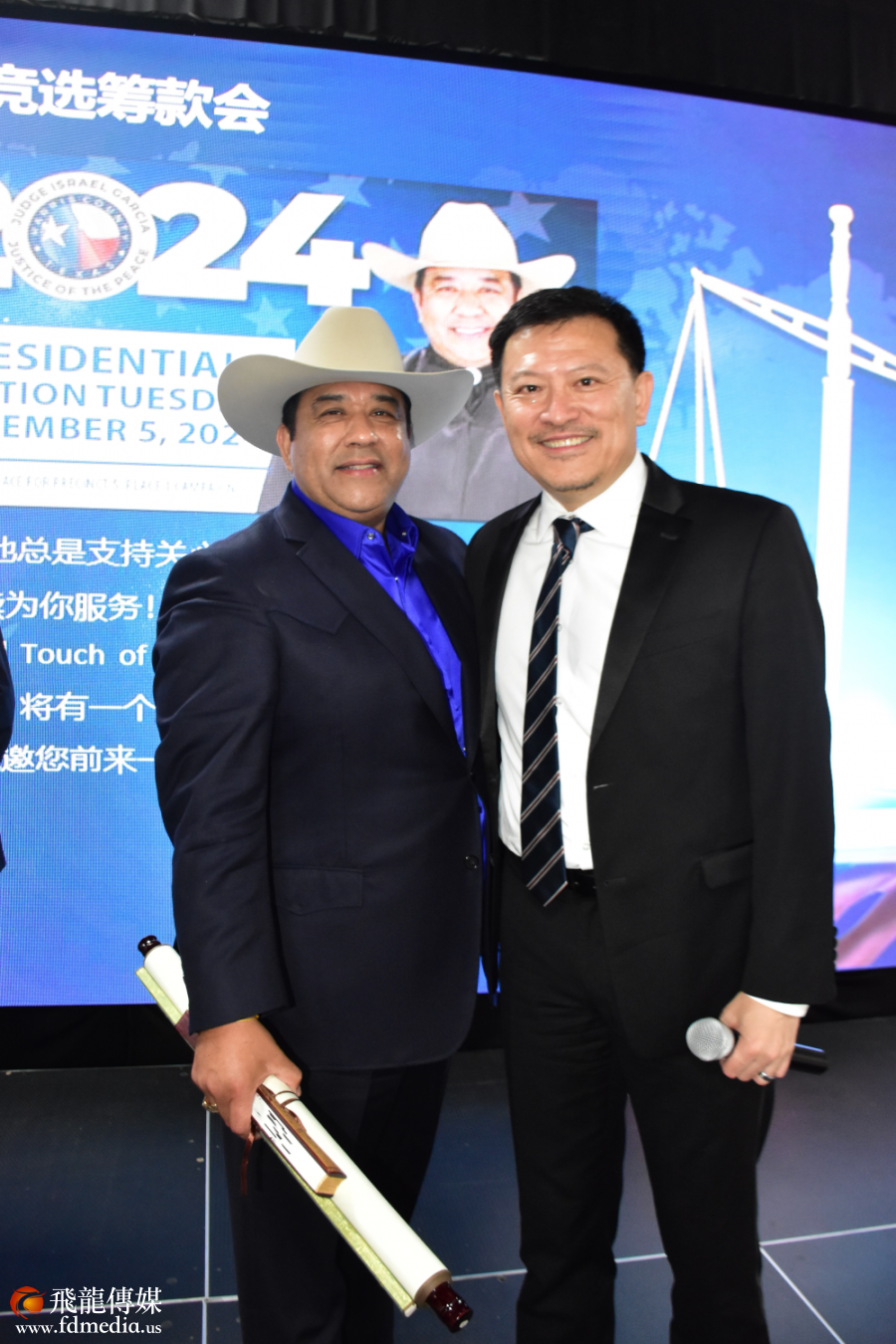 9月26日, 休斯顿侨界领袖们在中国城的SharpsTown里面的Touch of Class EVENTS CENTE,为支持第五区法官以色列.加西亚(lsrael B. Garcia, Jr. )竞选连任举办了一场筹款活动。