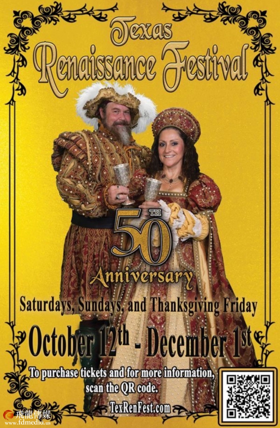 始于1974年的德克萨斯文艺复兴节(Texas Renaissance Festival),今年将迎来其盛大的50 周年庆典。2024年的 德州文艺复兴节(Texas Renaissance Festival)从10月12日至12月1日结束。共8个周末,期间还有感恩节(11月28日)和耶稣受难日(Good Friday,11月29日)两天的特别庆典,共计18天的狂欢,又将为来自全美乃至世界各地的游客带来中世纪的梦幻之旅。