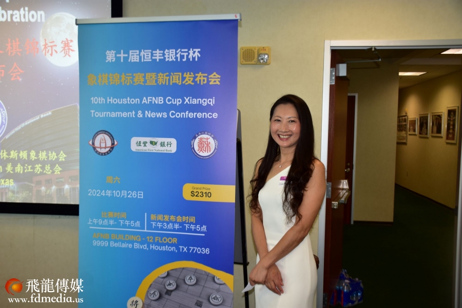 酒会由美南江苏总会的美丽端庄的陈晓华主持。最后,赞助单位与会嘉宾,参赛棋手,各路媒体代表和工作人员在欢乐的鸡尾酒会中自由交流,在美丽宽阔的恒丰银行大楼12层的大厅鸟瞰休斯顿金秋美景,令人回味无穷。宾主在欢快的气氛中频频举杯,祝愿休斯顿象棋活动越办越好!