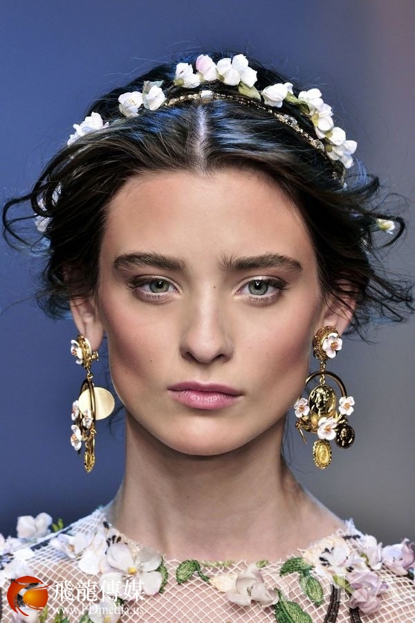 没有奢华王冠不要紧,一只漂亮的发箍或发带也能让你的新娘造型美得像仙女。比如说一只缀满了花朵的发箍,再加上花朵图案的耳环,最适合的就是浪漫的花园婚礼了。