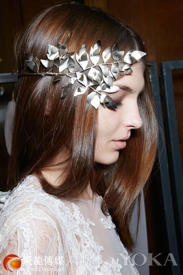 波西米亚风就是传统的花朵、发带吗?并不是!剪纸一样富有现代感的枝叶造型发饰,按照波西米亚风经典的佩戴方式,戴在额头一圈的位置,这种现代感MIX波西米亚的创新设计真是既酷又美。