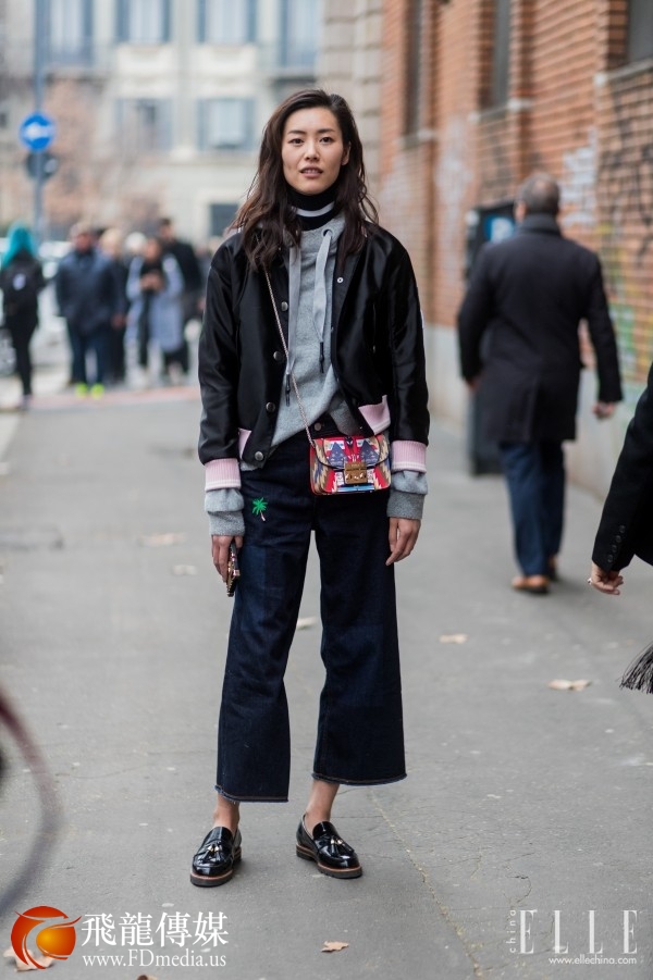 大表姐刘雯的私服街拍里我们也发现了九分裤的身影,阔腿九分裤搭配漆皮平底鞋,时髦指数扶摇直上。