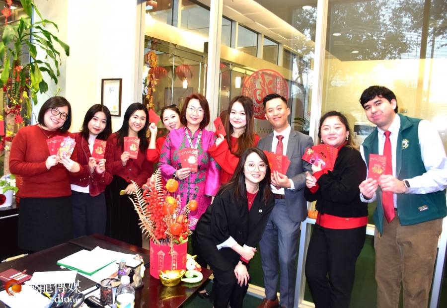 吴文龙董事长、经文处萧伊芳处长及恒丰银行的董事们给大家发红包
