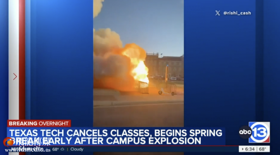 据 abc news 3月13日报道 德克萨斯理工大学(Lubbock校区)近日发生了一起维护孔爆炸事故,导致校园部分区域发生火灾和停电。校方随即发布了疏散令,疏散了多个校园建筑内的学生和教职员工,并取消了本周剩余时间的所有课程。