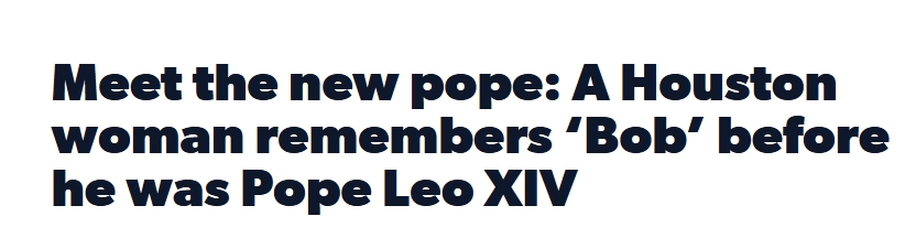 据click2houston 5月8日报道 红衣主教Robert Prevost当选为教皇利奥十四世,全球许多人都在问:现在领导天主教会的这个人是谁?对休斯顿的一名女性而言,这个问题却带有私人情感色彩。