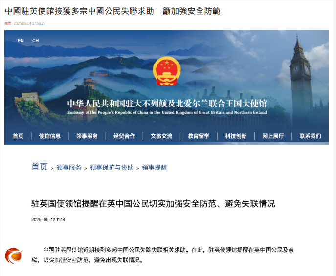 中国驻英国大使馆 网站:https://www.dotdotnews.com/s/202505/14/AP68246818e4b0eaf7675070ac.html