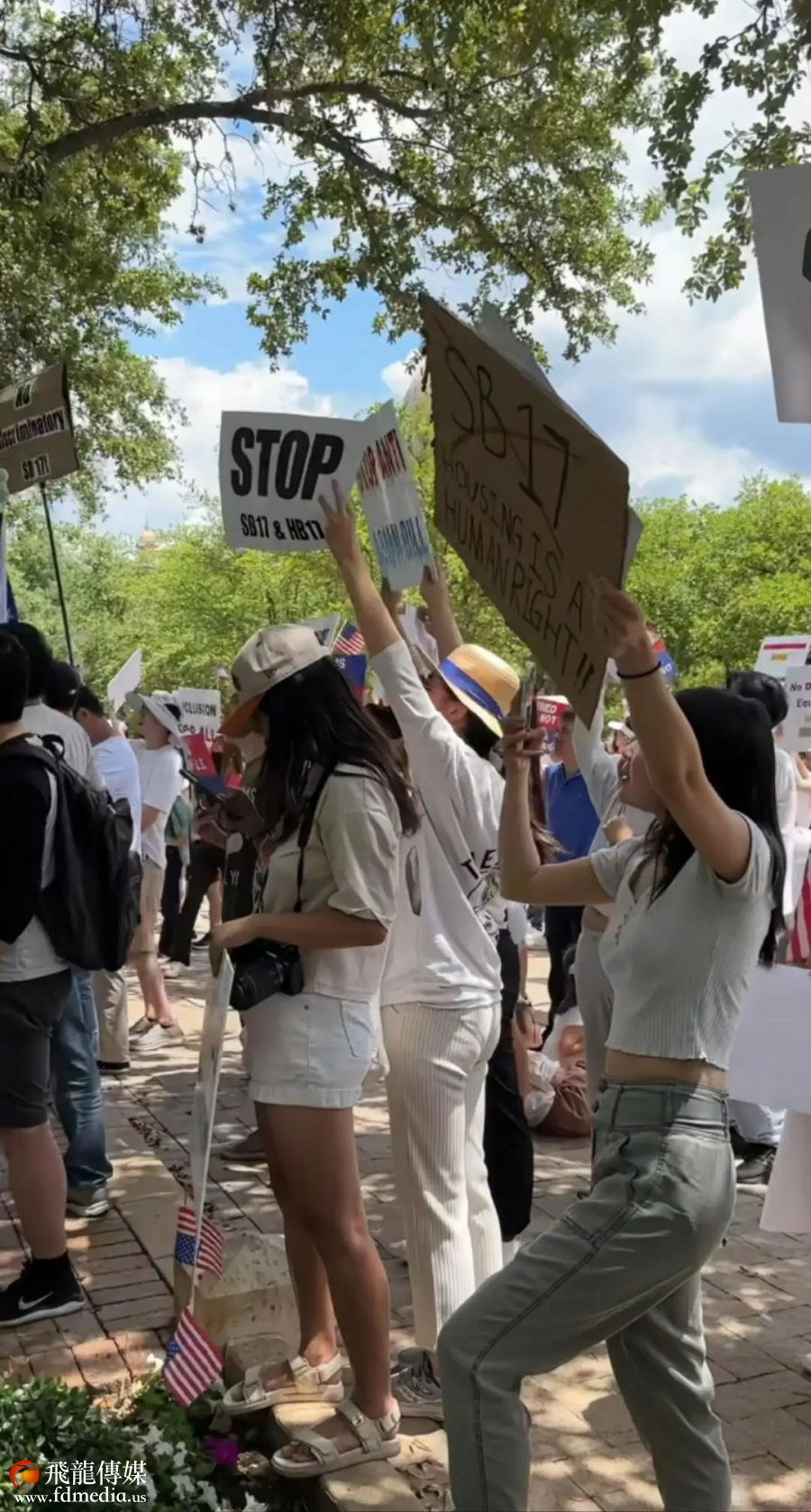 据一名在现场参加了抗议活动的华人爱丽丝(化名)告诉红星新闻记者,当天的抗议活动从中午11点开始,持续了约1个小时,现场聚集了几十名华人,人群中既有十多岁的青少年,也有五六十岁的成年人,大家举着“购房是人权”“人人平等”等反对标语,围在德州州长家门口。