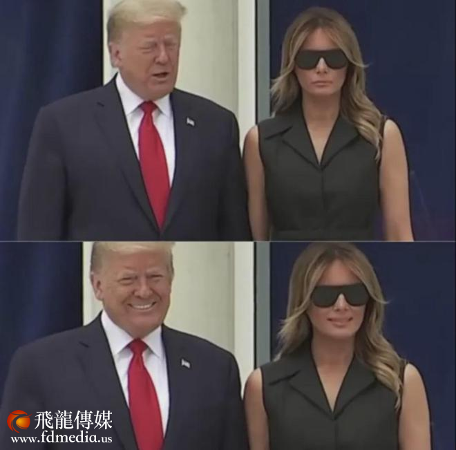 媒体的长枪大炮开对着特朗普夫妇疯狂咔嚓闪烁,特朗普卑微地求梅拉尼娅说:“你能笑一个吗?”
