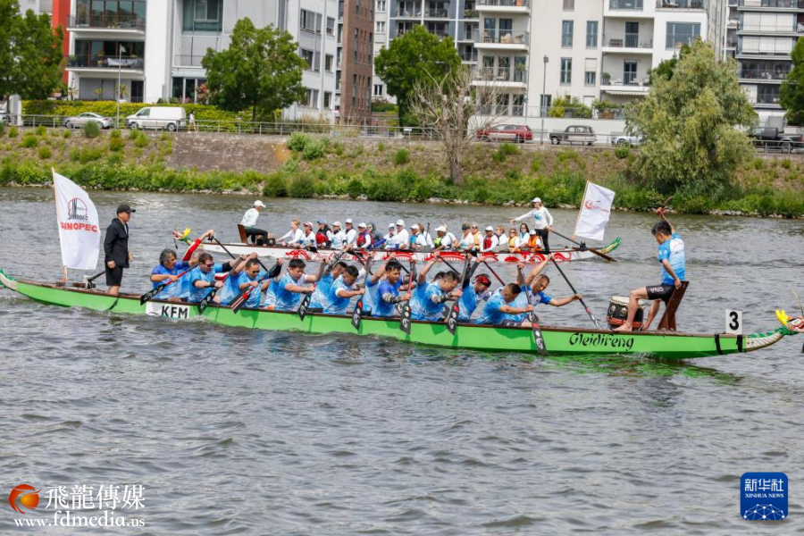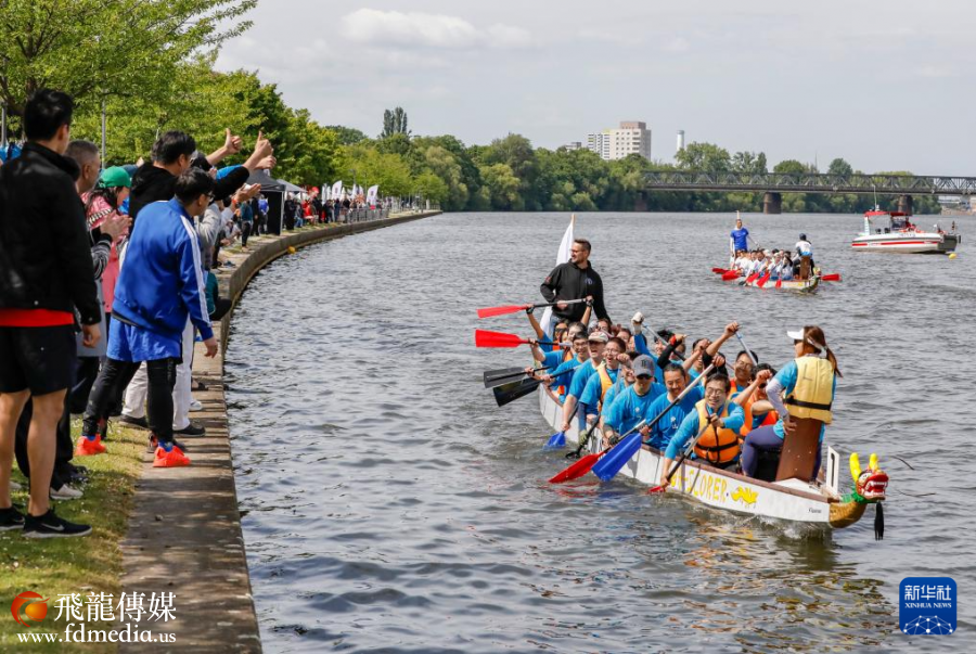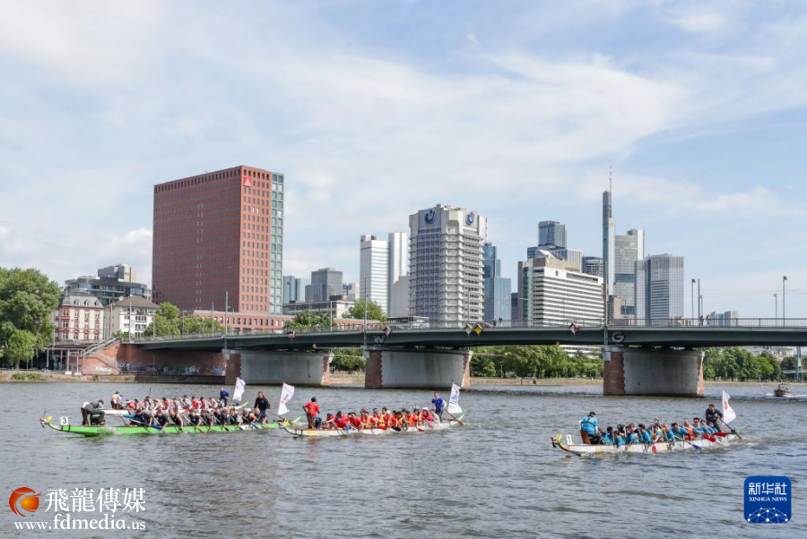 5月24日,人们在德国法兰克福美因河上参加龙舟比赛。