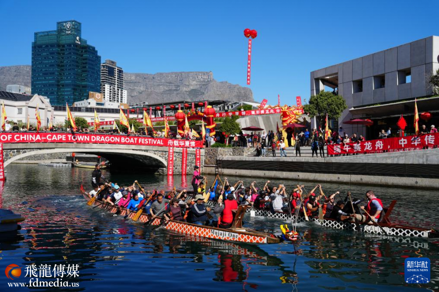 5月24日,人们在南非开普敦参加龙舟比赛。