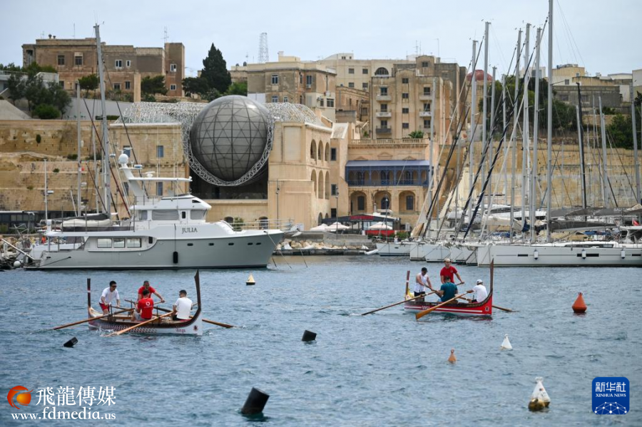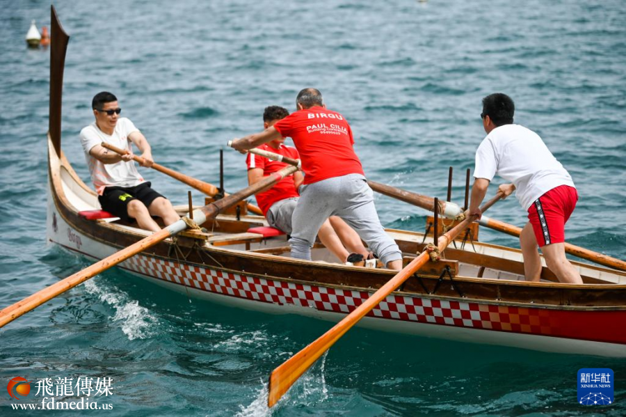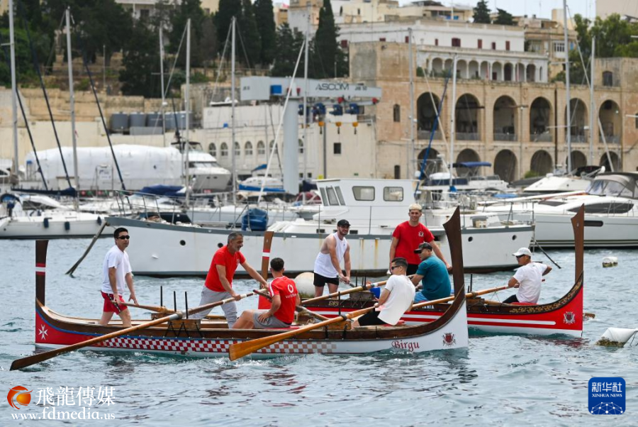 5月24日,人们在马耳他比尔古参加龙舟比赛。