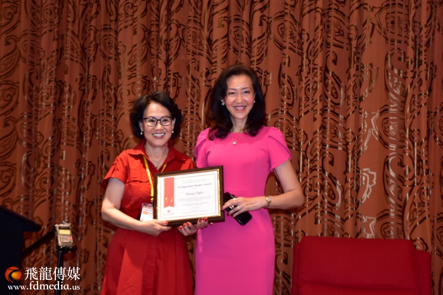 Hong Ogle做午餐会主题演讲,组委会主席邹雅丽教授给颁发证书
