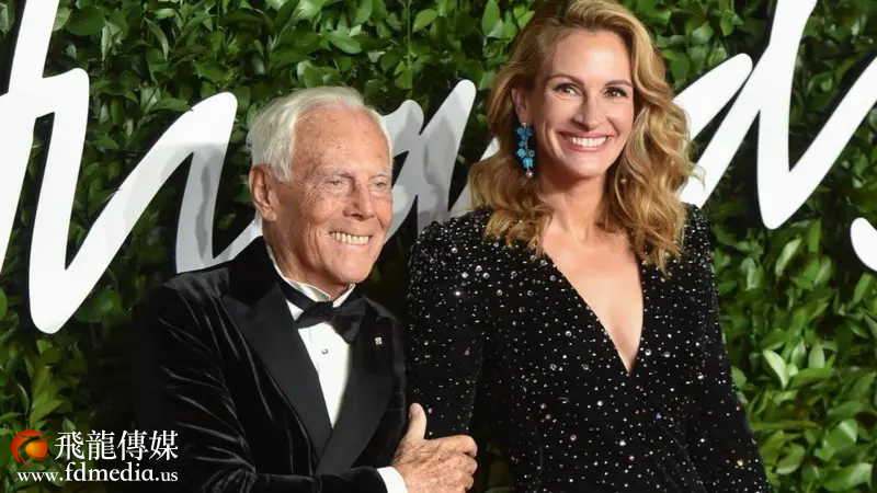 亞曼尼(左)與影星茱莉婭·羅伯茨(Julia Roberts)在2019年的一場活動中結伴走在紅地毯上。 图片来自:Getty Images