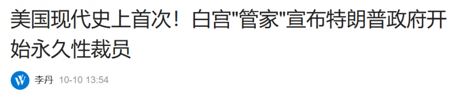 美国联邦政府关门进入第10天,白宫“管家”确认,特朗普政府开创了美国现代史的先例:首次在联邦政府关门期间进行大规模永久性裁员。