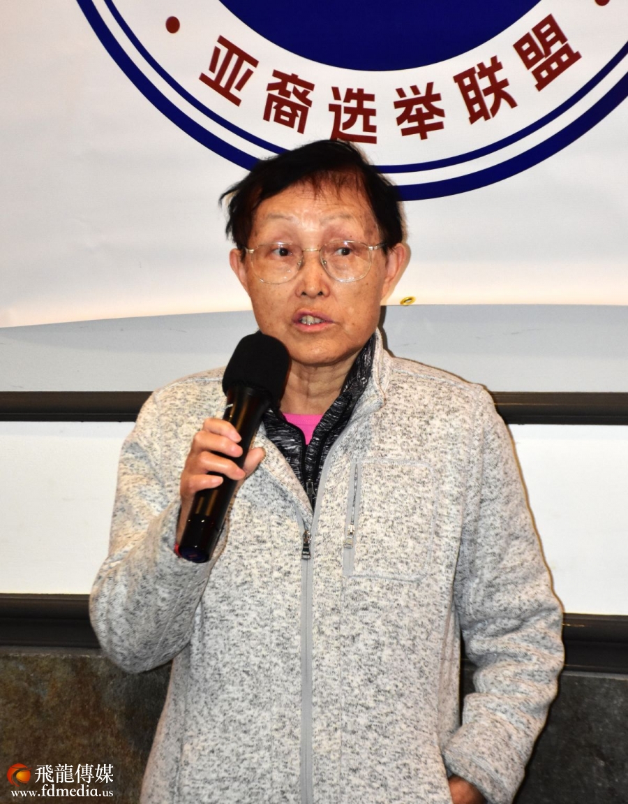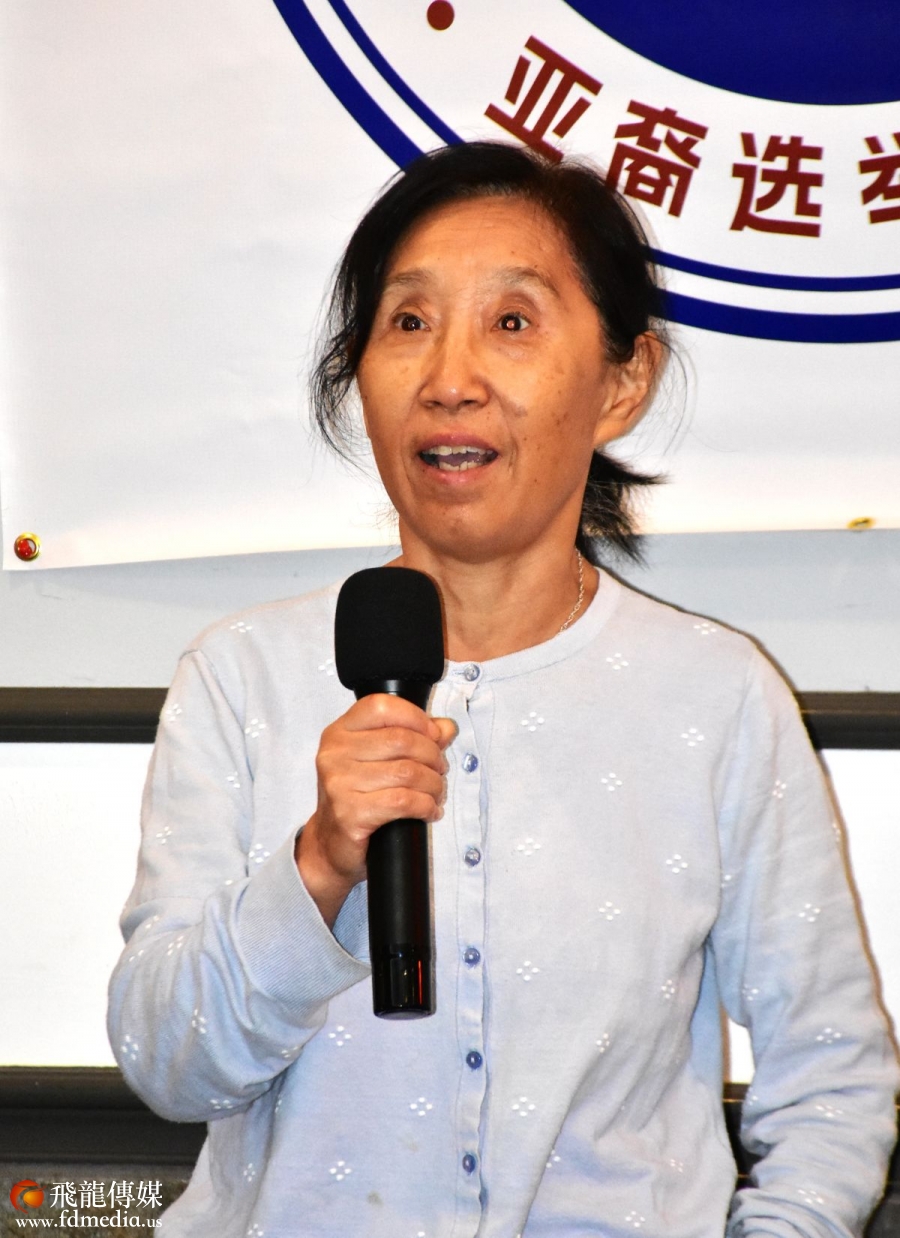 美南江苏总会前会长陈铁梅发言。