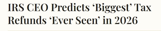 据Newsweek 12月25日报道 美国国税局CEO Frank Bisignano预测,美国人将在2026年收到“有史以来最大规模”的退税。