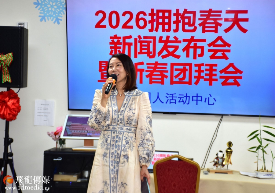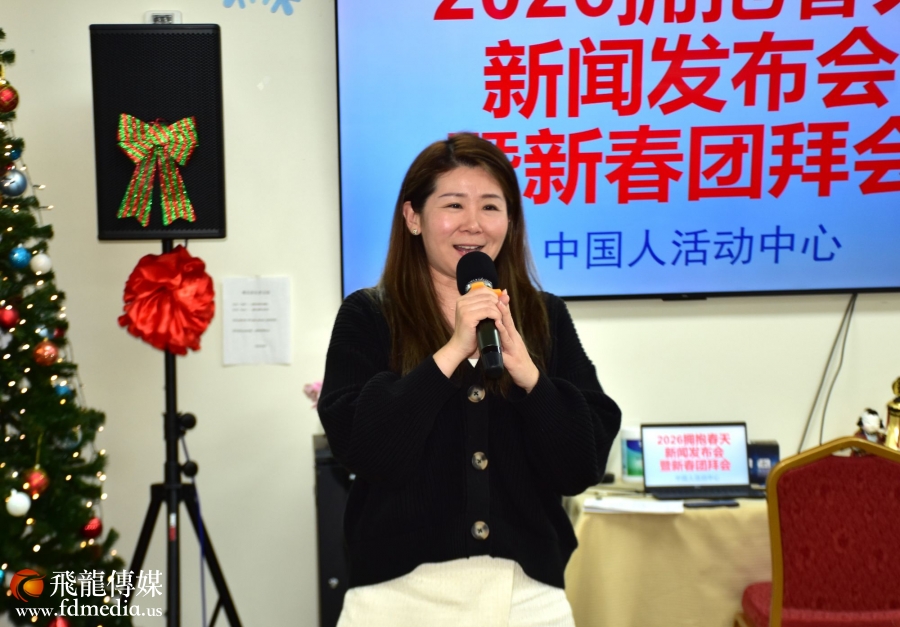 发布会上宣布,《2026拥抱春天》春节联欢晚会由建东银行冠名赞助。建东银行副总裁 Grace Kwo(郭又萍) 代表银行发表致辞,表达了对华人社区文化建设的支持与对晚会圆满成功的祝福。