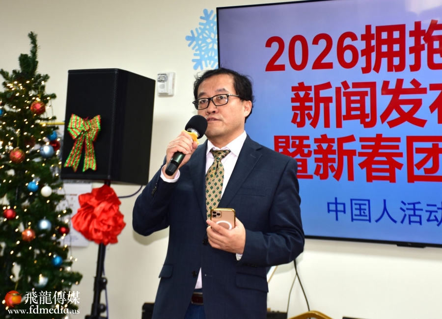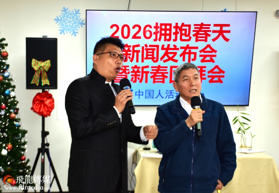本次新春团拜活动同期举行了 “2026《拥抱春天》春节联欢晚会”新闻发布会。来自大休斯顿地区的社团代表、赞助商代表以及《2026拥抱春天》晚会组委会成员等 70余人 出席活动,现场气氛热烈、喜庆祥和。