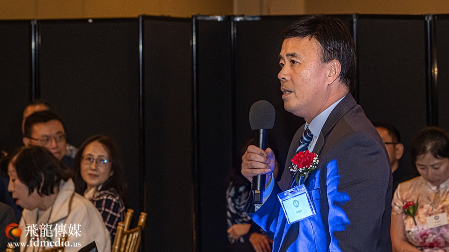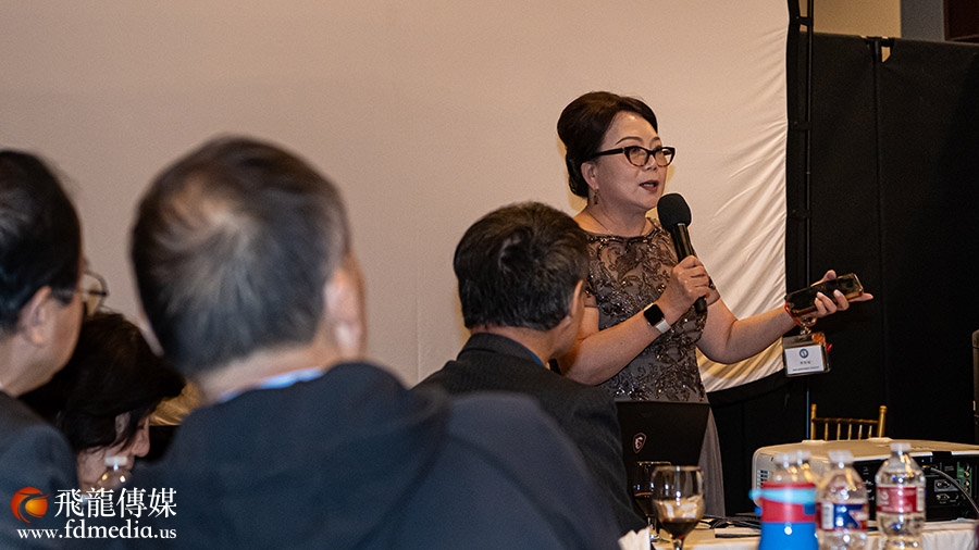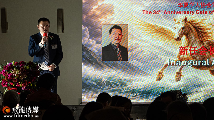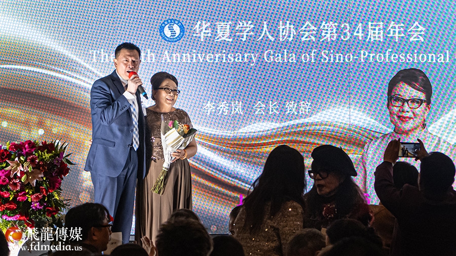 在本次的年会晚宴上休斯顿华夏学人协会的现任会长李秀岚做了她在两年任期中的工作回顾。在华夏学人协会董事会秘书长罗雪梅的主持和见证下李秀岚会长和继任会长陆峻交接了华夏学人协会的会长铭牌。新会长陆峻随后致辞,对老会长和理事们的工作表示了感谢,对将来的华夏学人协会的发展及工作做了期许。