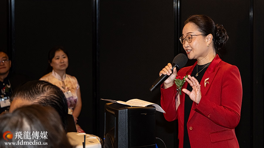 35)华夏学人协会董事会秘书长罗雪梅的主持和见证会长交接仪式