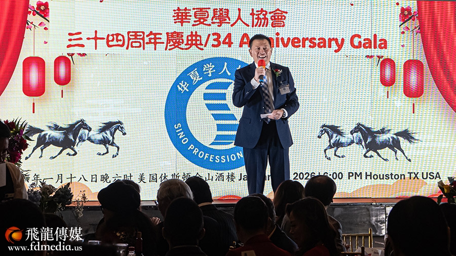 2026年1月18日晚,休斯顿华夏学人协会在金山饭店宴会厅成功举办了第34届年会,并进行了新老会长的交接仪式。本次会年是由OMA Sushi冠名赞助,并得到了六十余家商号,社团和个人的赞助。当晚,休斯顿侨社各界各社团约4百人参加了盛会。