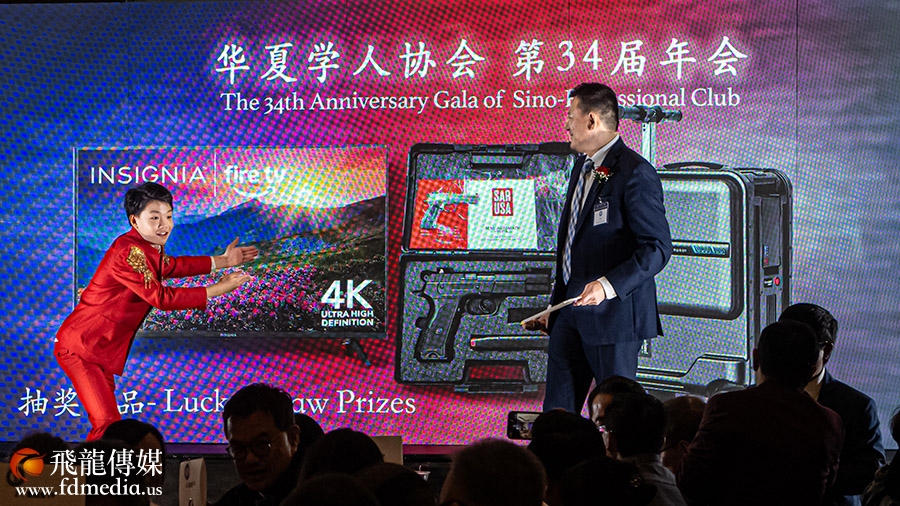 华夏学人协会的第34届年会晚宴除了为与会者提供了精美的食品外,还安排了文艺表演,珍品拍卖和抽奖活动。让嘉宾们在欢乐的气氛中度过了愉快的一晚。