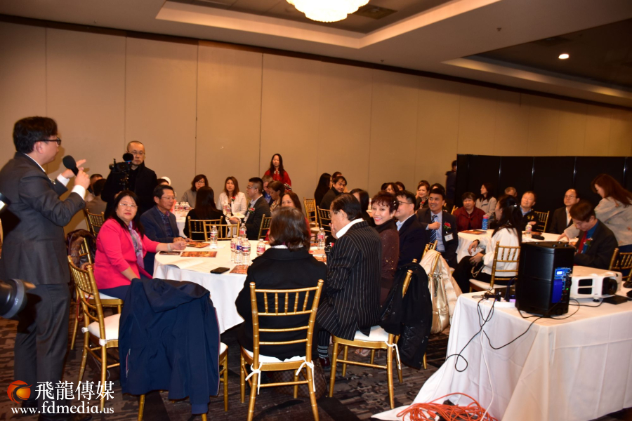 在晚宴前,举办了酒会,主题为 Ai 时代。图为:元臣律师事务所 陈凡开讲中。
