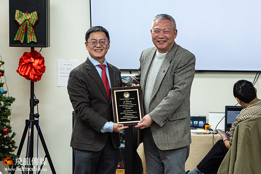 19)同乡会董事黄宏发代表董事会向齐会长颁匾,感谢他的奉献