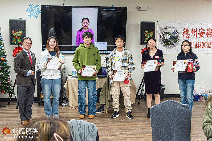 “安徽之星”高中生奖学金颁发仪式是同乡会为鼓励徽二代勤奋进取、追求卓越而颁发的奖学金。今年共有五位徽二代获得了“安徽之星”高中生奖学金。齐海瑜会长向他们颁发了奖金和奖状。