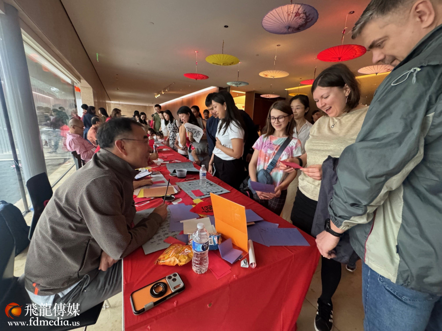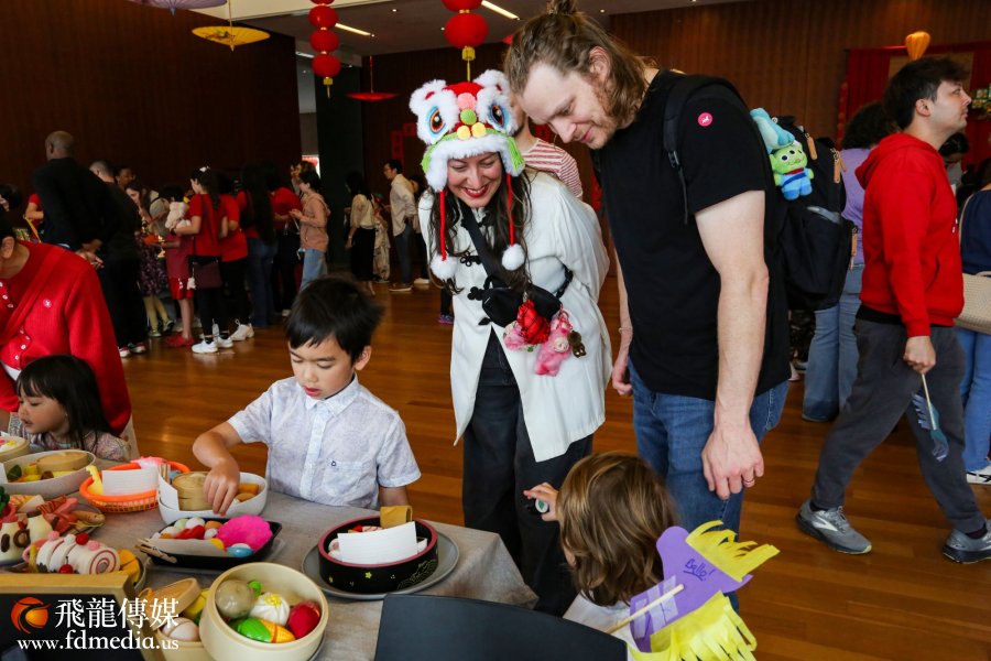 书法、折纸、绘画、钩针艺术、马年吉祥物制作等摊位前始终人潮涌动。书法区排起长龙,义工们挥毫泼墨,书写春联与吉语,并为来宾翻译中文名字,将最美好的新春祝福送到每个人手中。