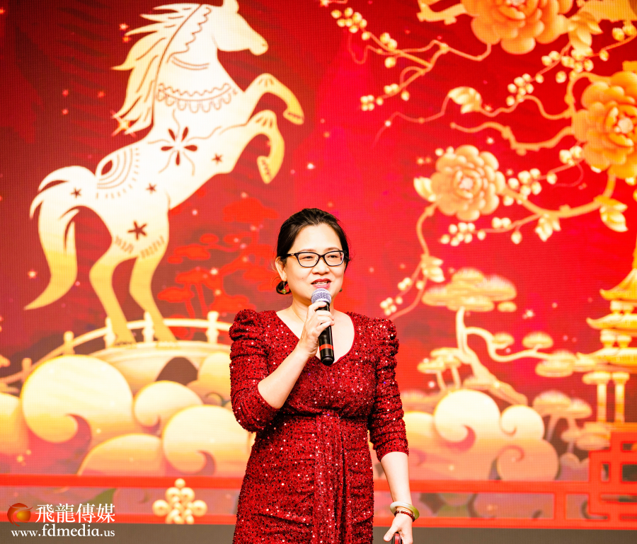 休斯顿湖南同乡会的元老级人物暨现任斯坦福市议员兼副市长谭秋琴女士百忙之中莅临现场并致词,向老乡们拜年问候并祝福。