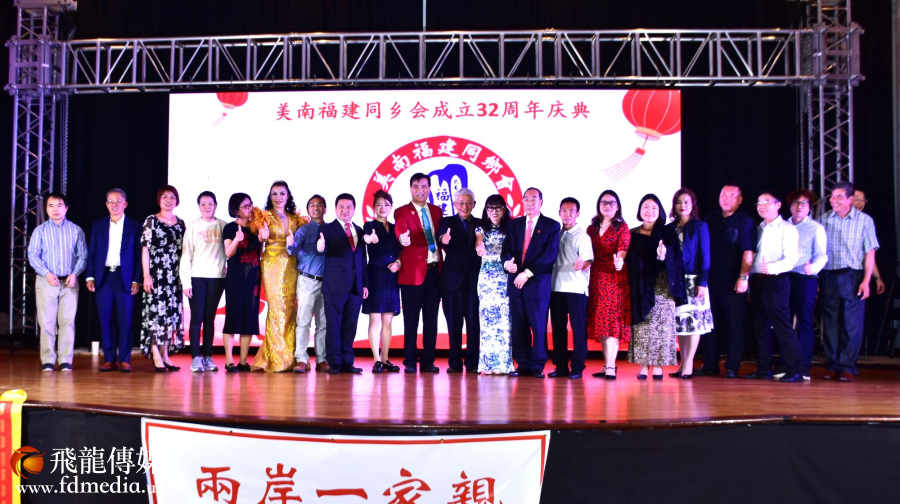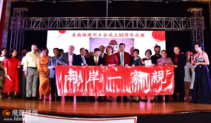 德州中国和平统一促进会的部分理事上台与福建同乡会理事一起合影