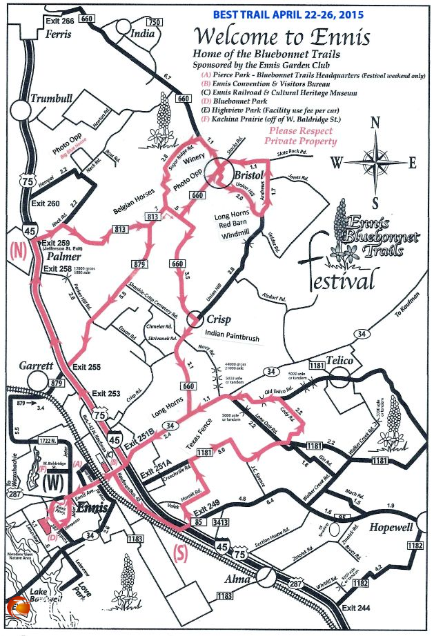 州最负盛名的野花观赏地,当属位于北部的 Ennis Bluebonnet Trails。