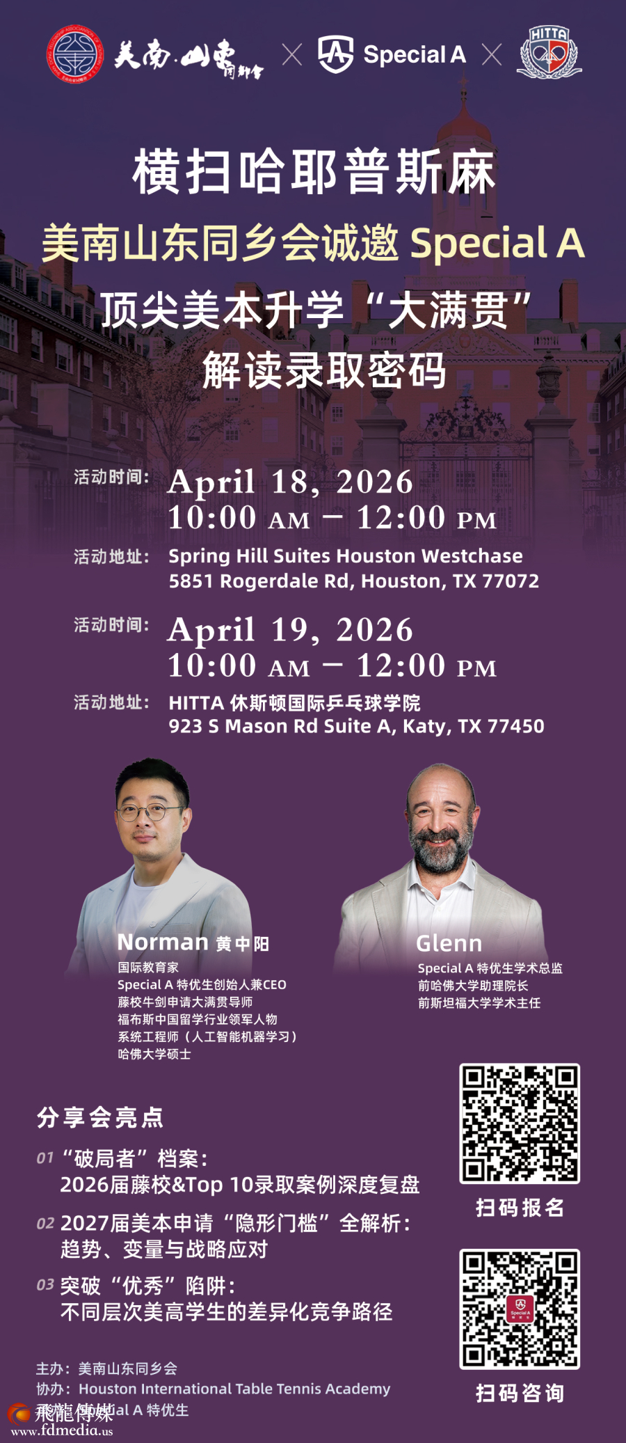 为助力同乡学子圆梦藤校,美南山东同乡会特邀Special A特优生的行业顶尖导师,带来「哈耶普斯麻美本录取解码」线下干货分享!