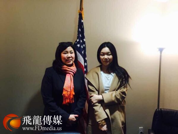 杨雨蕉(右)与纽约州的国会众议员孟昭文(左)。