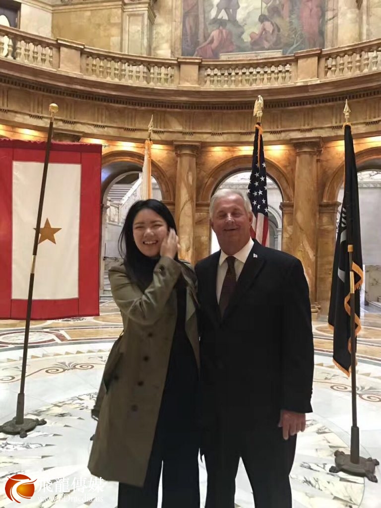 杨雨蕉(左)与麻州共和党主席、美中合作委员会共同主席哈金先生(右)。