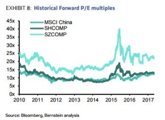 图注:MSCI中国指数、上证综指、深证综指平均动态市盈率历史走势图
