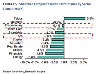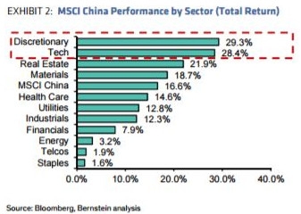 国际知名投行Bernstein覆盖的A股股票范围也反映了今年以来A股市场风格转换。如果我们把A股股票分为新经济板块和消费板块两个部分,然后去除代表旧经济的传统行业股票。其中,分析师没有考虑股票分析师评级因素,并将汽车行业划分为新经济板块,将华夏幸福等房地产开发企业划分为旧经济板块。在Bernstein投行覆盖的A股股票中,代表中国新经济的股票今年以来累计平均上涨14%。相比之下,代表旧经济的中国传统行业股票今年以来涨幅仅为2%。尽管A股市场的大盘指数表现较为低迷,但是引领中国经济的消费和科技板块股票仍然创下不俗的表现。这两个板块也成为境内外市场投资者共同追逐的热门题材。