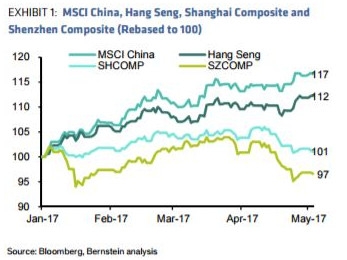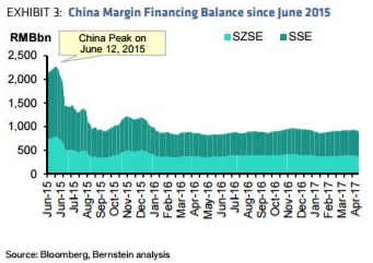 此外,今年以来A股市场和港股市场中投资者的情绪也大不相同。从2015年夏天牛市结束至2016年春季期间,上证综指几乎腰斩,同期上海市场和深圳市场中股票融资余额也几乎没有变化。究其原因,在散户主导的A股市场中,大陆投资者由于一系列股灾而产生心理阴影,因此不再敢下重注投资股票,这也是散户主导股市中常见的现象。
