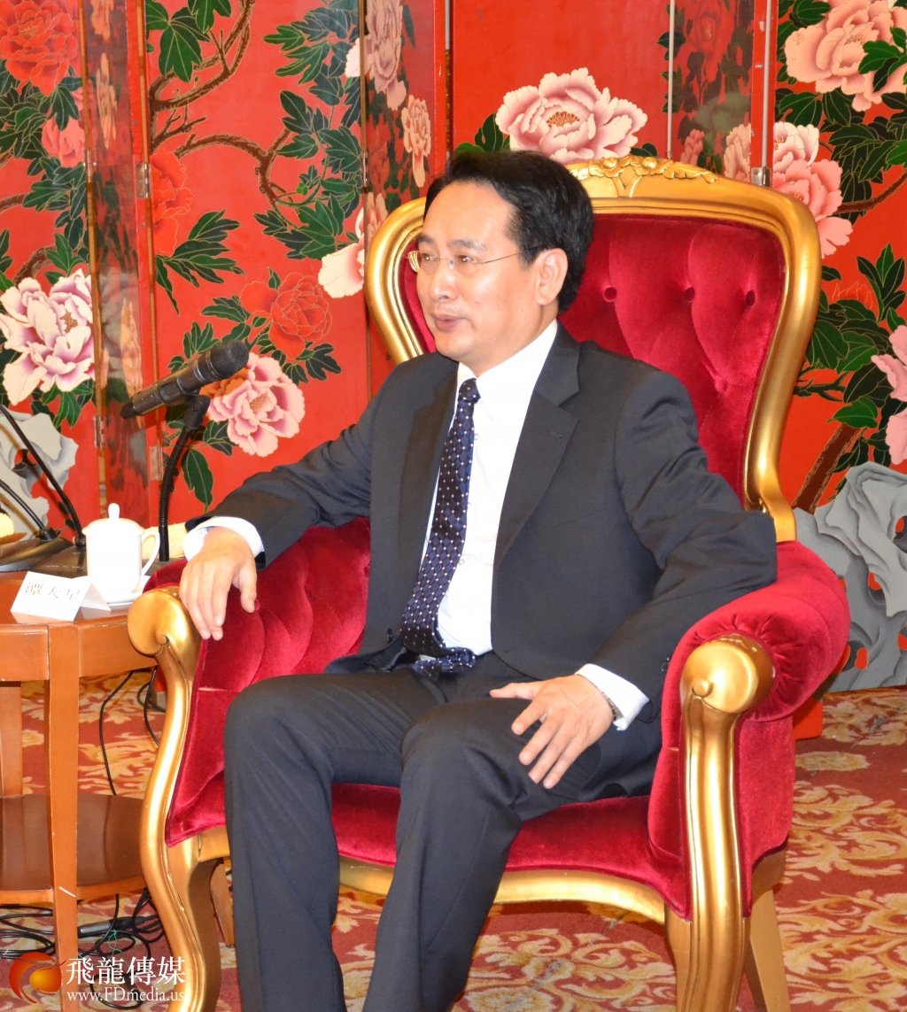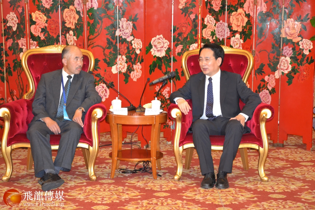 (右)中国国侨办副主任谭天星、(左)全美统促会访问团团长陈国庆。