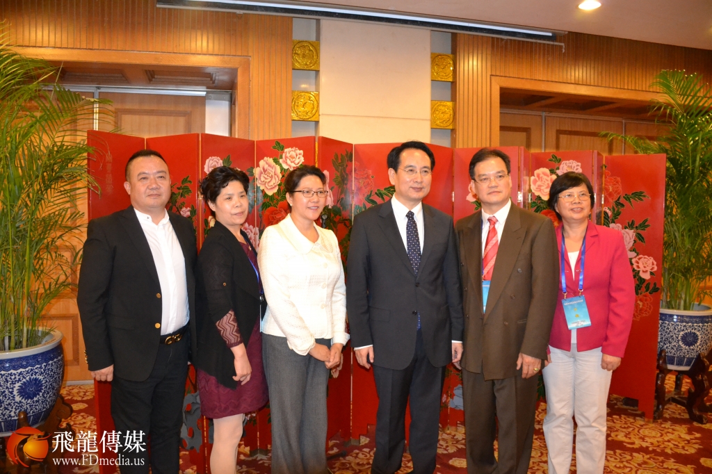 左起:中国国侨办张康、大费城中国统促会副会长王进、佛罗里达州中国和平统一促进会副会长彭文莉、休斯顿美中友好促进会副会长陈文、中国和平统一促进会海外部美大处长郭兆祥合影留念。