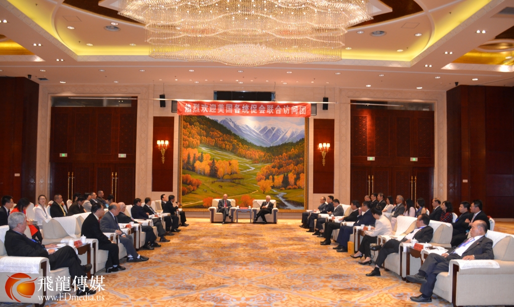 5月11日下午,中国和平统一促进会名誉会长周铁农在北京新疆大厦会见了以陈国庆为团长的美国各统促会联合访问团一行。