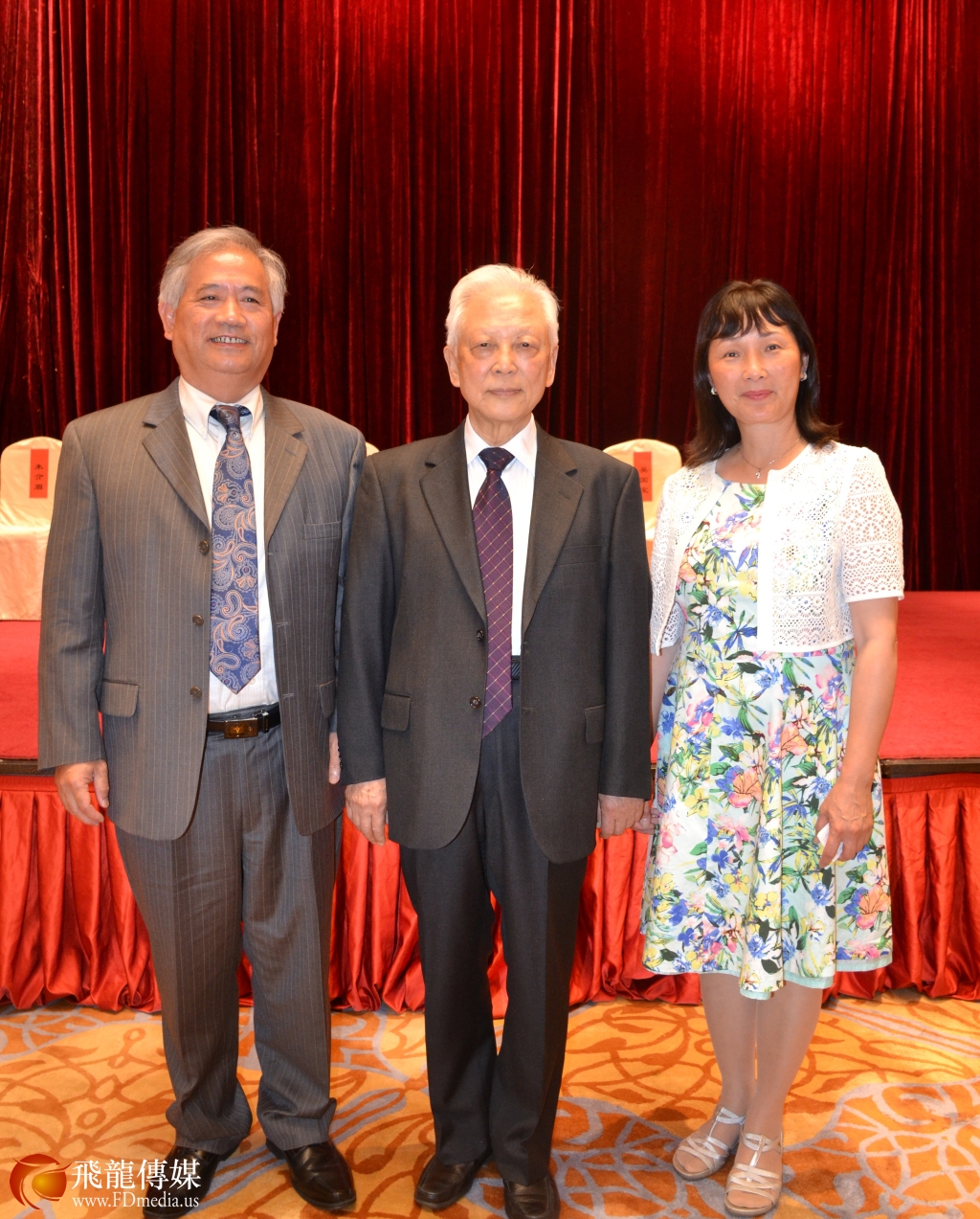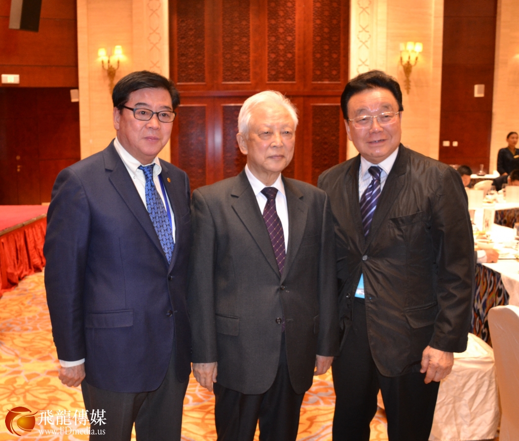 图左起:纽约和统会高级顾问田长桉、 中国和平统一促进会名誉会长周铁农、旧金山统促会会长吴国宝合影留念。