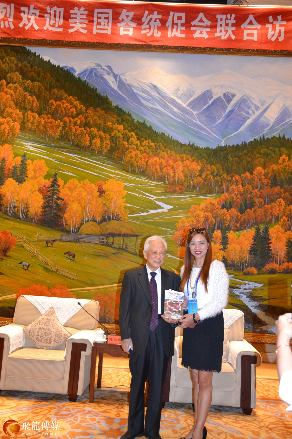 弗罗里达和统会副会长彭文莉与中国和平统一促进会名誉会长周铁农合影留念。